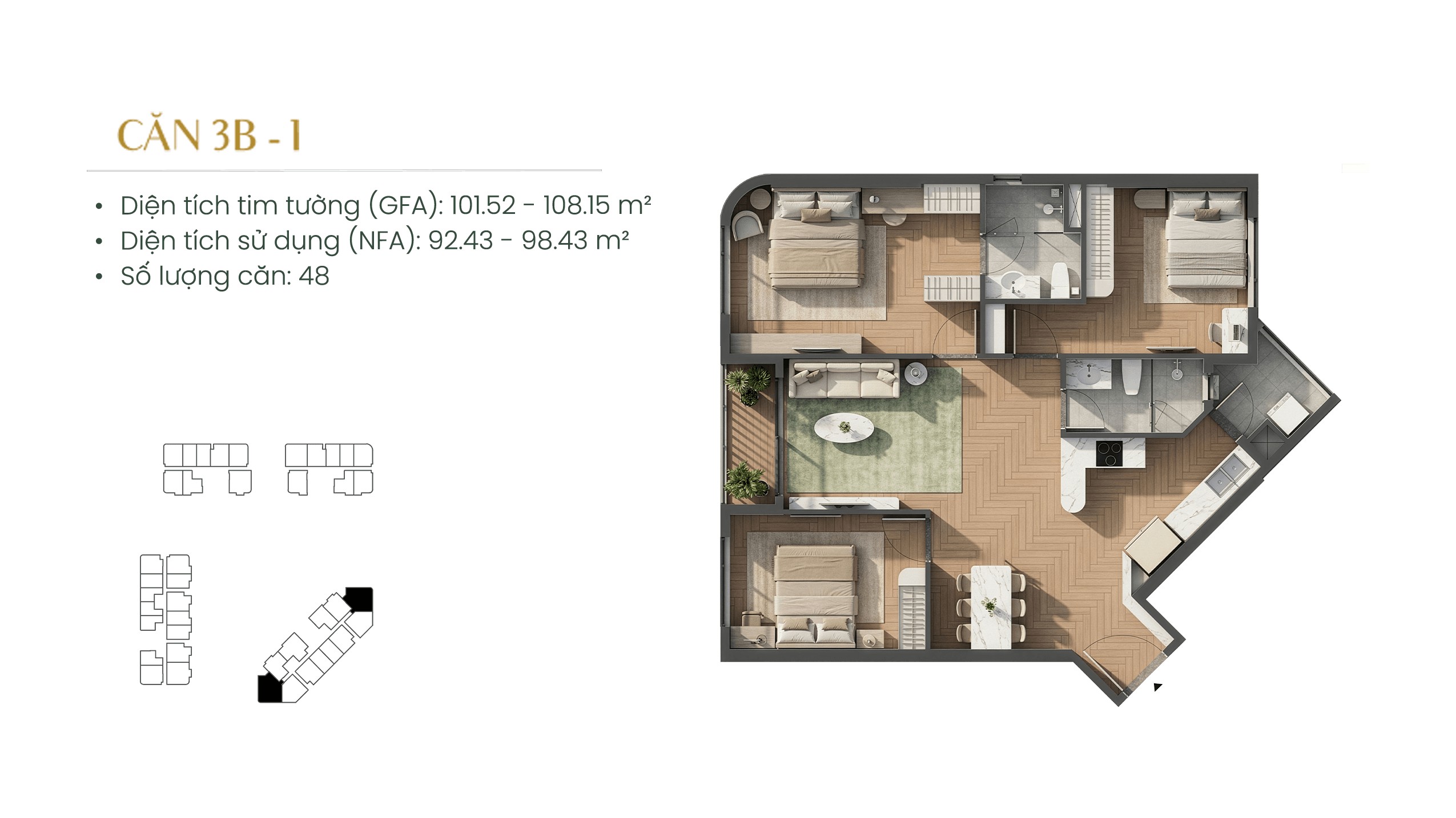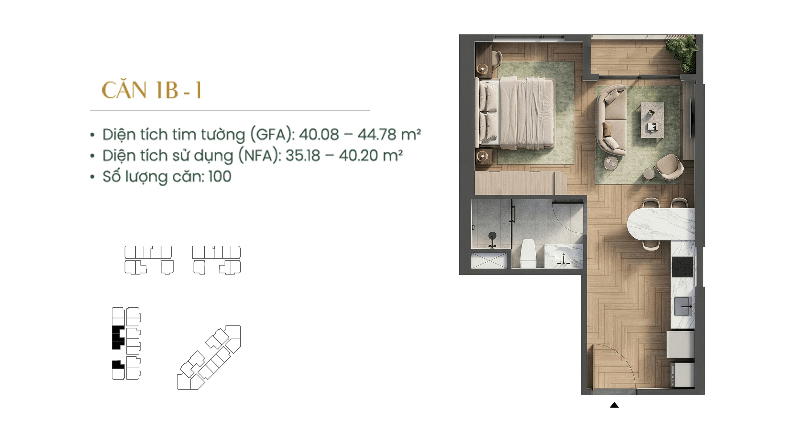 4 tháp – 28 đến 40 tầng – 1.296 sản phẩm