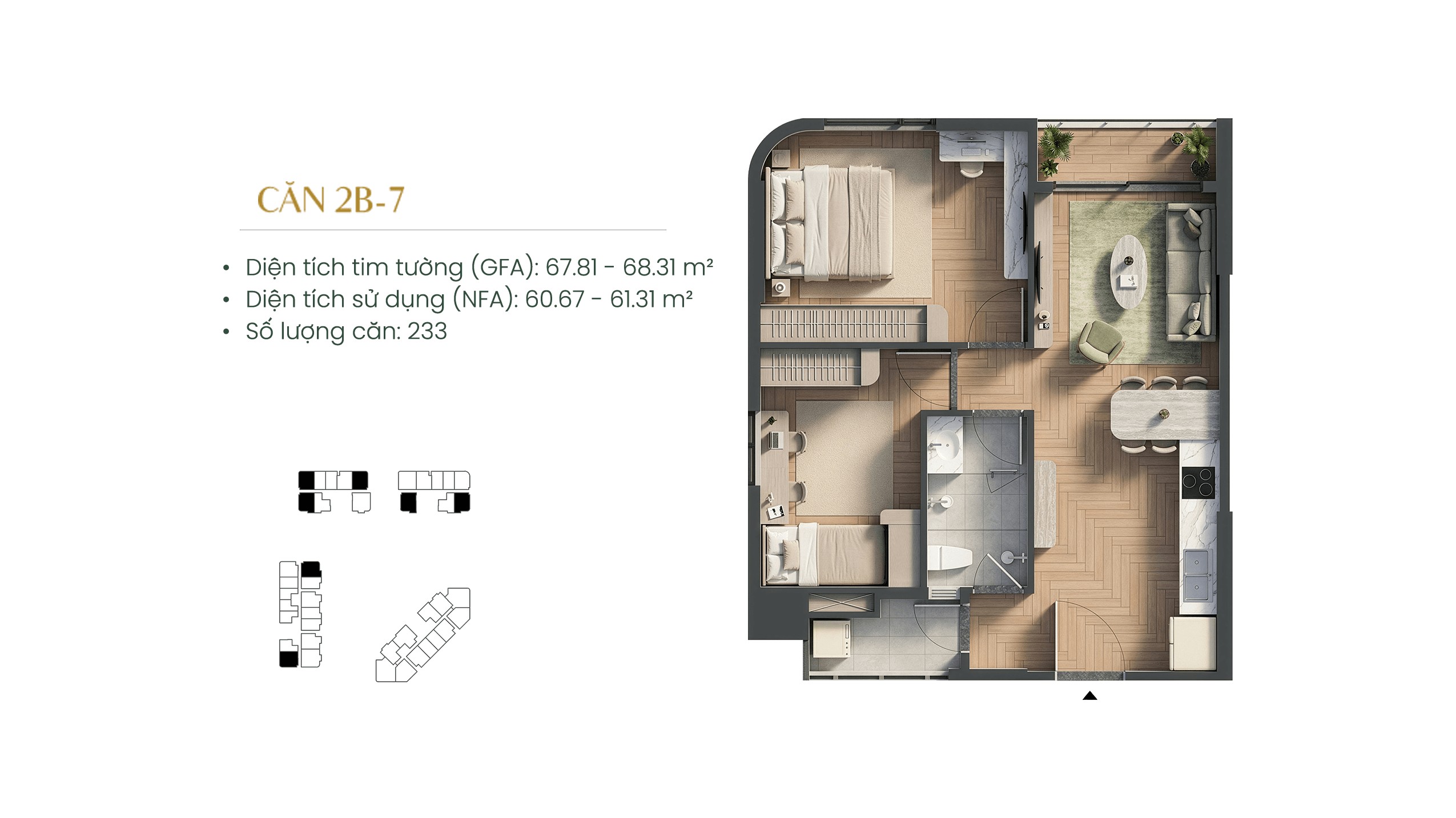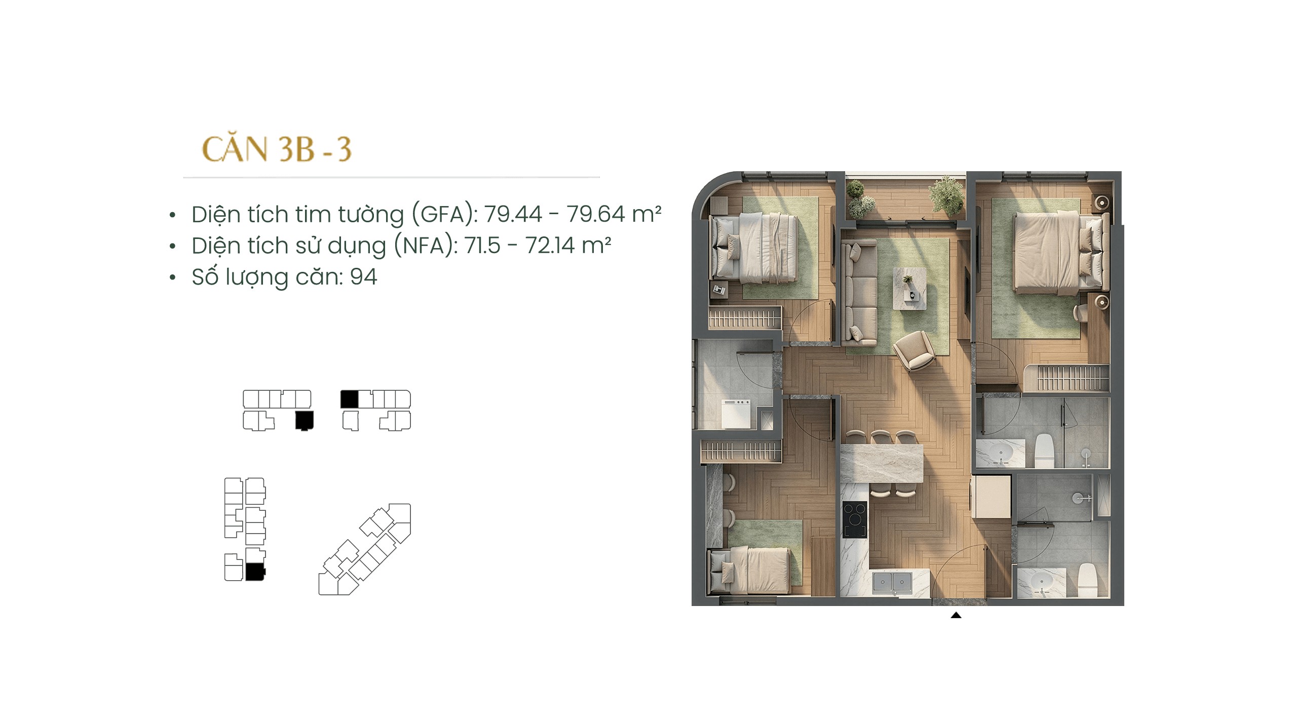 Các block căn hộ được bố trí khoa học, đảm bảo độ thông thoáng, tầm nhìn mở và khả năng đón ánh sáng – gió tự nhiên. Mỗi căn hộ đều được nghiên cứu kỹ lưỡng về công năng, giúp tối ưu diện tích sử dụng, hạn chế không gian thừa và mang lại sự thoải mái trong sinh hoạt hằng ngày.